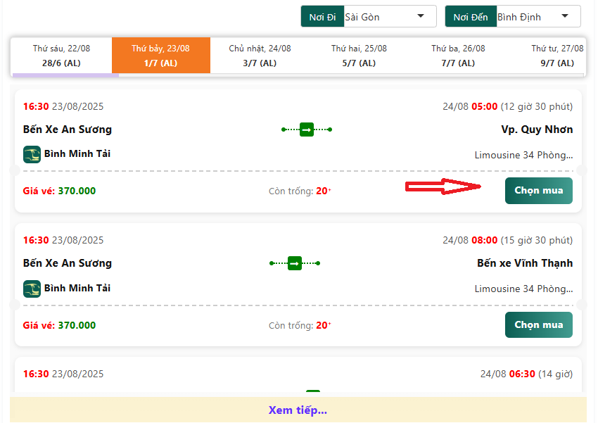 Bước 2: Chọn giờ khởi hành phù hợp với kế hoạch của bạn.