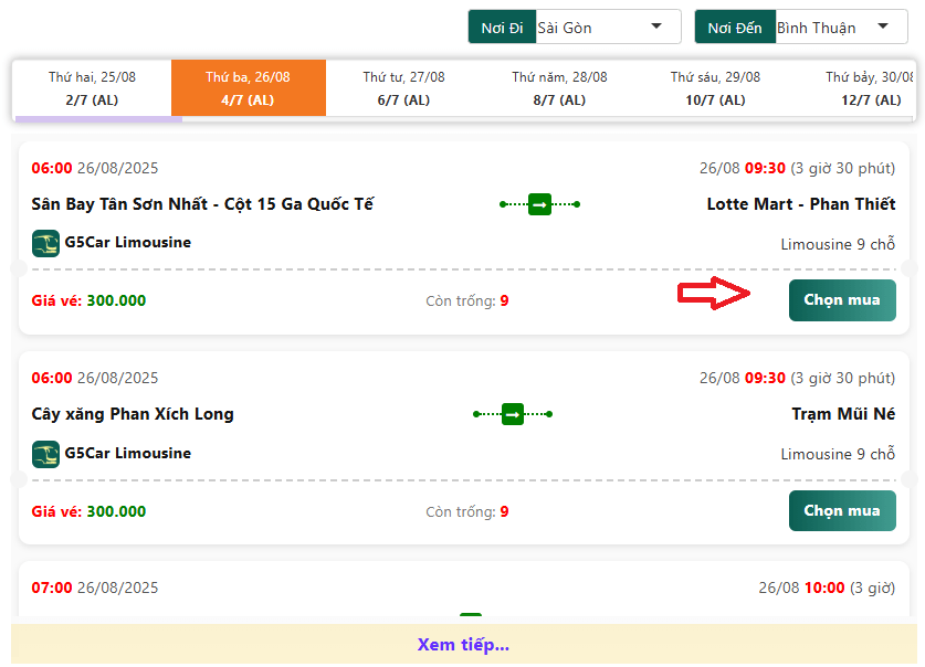 Bước 2: Chọn chuyến