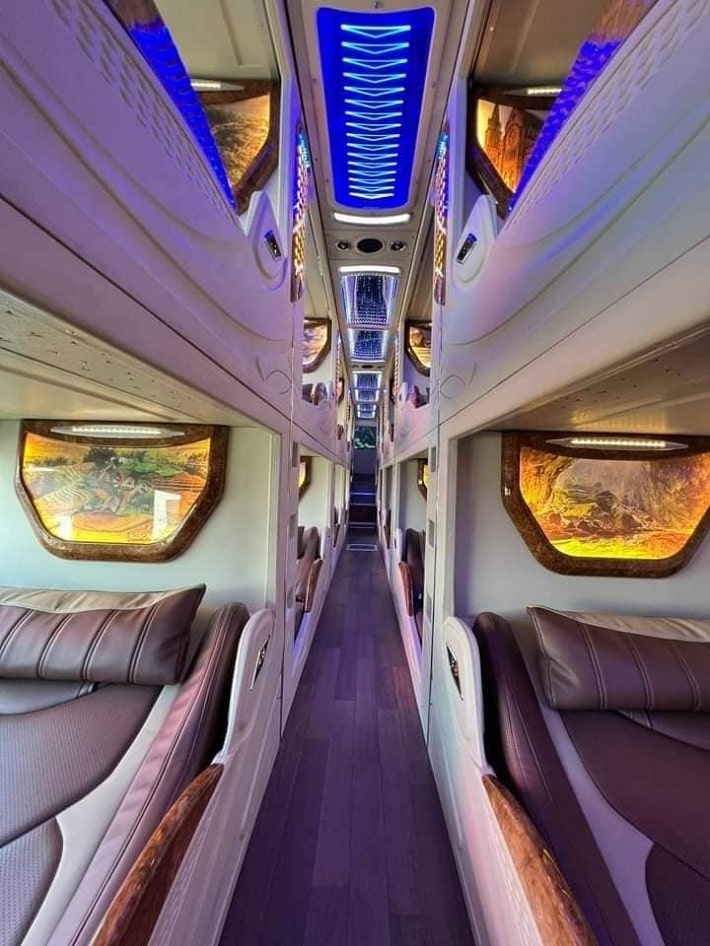Dùng cho các tuyến dài Bắc - Nam như: Hà Nội - Huế/Đà Nẵng/Sài Gòn. Xe được trang bị giường nằm 39-45 chỗ, tiện nghi nội thất 5 sao với điều hòa, WC khép kín, tủ lạnh mini, wifi, USB, khăn lạnh và nước uống miễn phí…