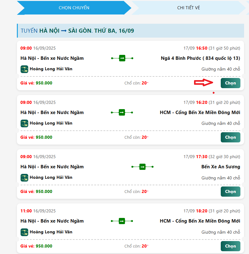 Bước 2: Chọn chuyến