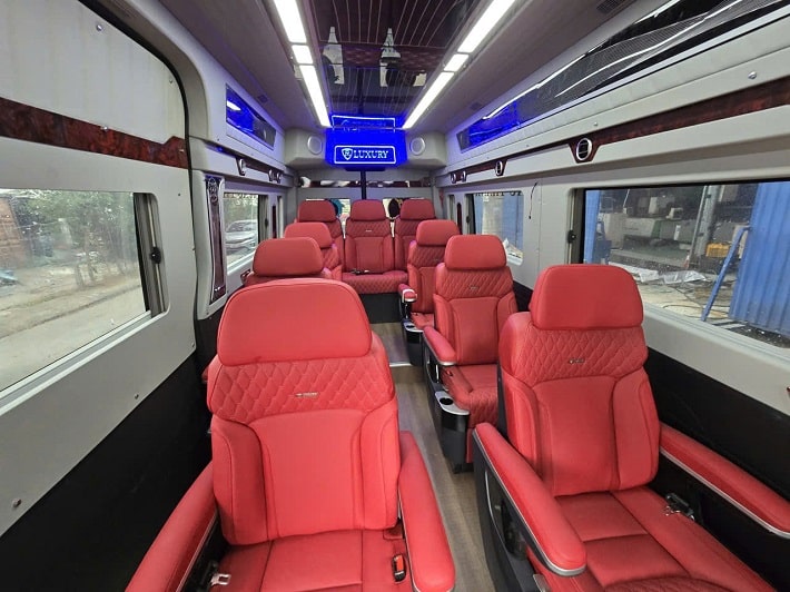 Limousine 9 chỗ: Được trang bị nội thất sang trọng với ghế ngồi bọc da, điều hòa, hệ thống giải trí hiện đại và đèn LED ấm cúng.