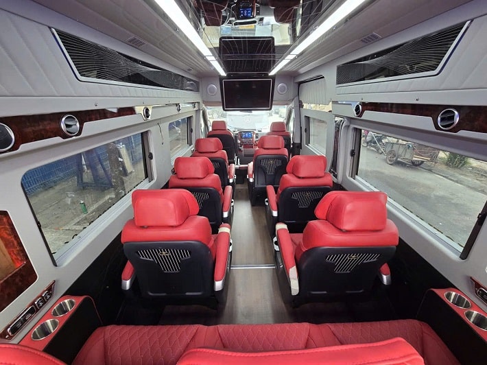 Limousine 16 chỗ: Phù hợp cho nhóm khách đông, xe được trang bị ghế ngồi bọc da, điều hòa, hệ thống giải trí.